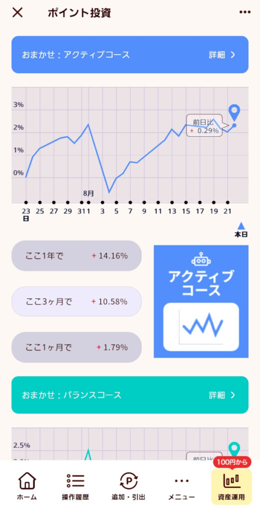 dポイントの投資でスタート、おまかせ(アクティブ)に落ち着いた