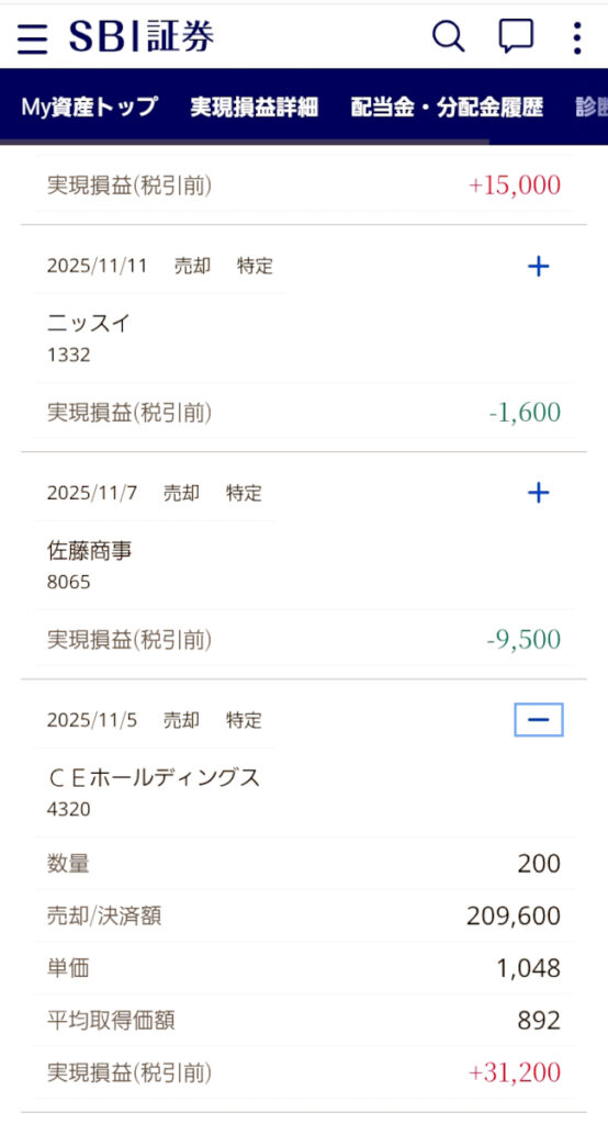 11月5日(水) CEホールディングス(4320) +31,200円(200株)